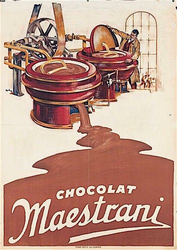 Fils d’un Tessinois qui, comme bien d’autres à l’époque, émigra en Lombardie pour s’initier au métier de chocolatier, Aquilino Maestrani (1814-1880) fut lui-même formé à cet art à Milan. En 1852, il créa une fabrique de chocolat à Lucerne, à la Krongasse, qu’il dut bientôt agrandir au regard de la demande, forte en cette région touristique. Concient du caractère saisonnier de sa clientèle et du risque encouru par son affaire, il décida, en 1859, pour lui garantir des rentrées plus importantes et plus stables, de déplacer celle-ci à St-Gall. La firme connut alors un rapide essor, exportant ses produits en Italie et en Autriche. À la mort de Maestrani, elle fut reprise par ses fils, Ludovico, Roberto et Savino. Peu après, en 1883, elle fut promue « fournisseur officiel de la cour d’Umberto Ier, roi d’Italie ».