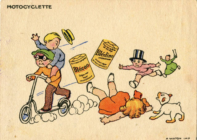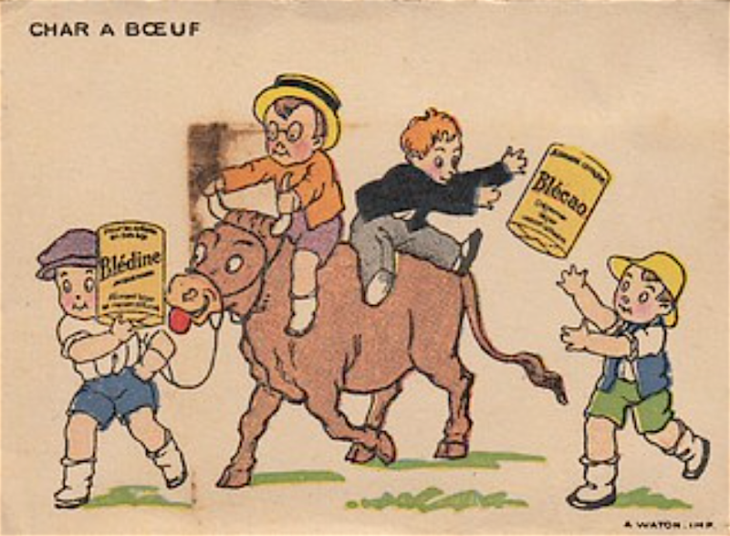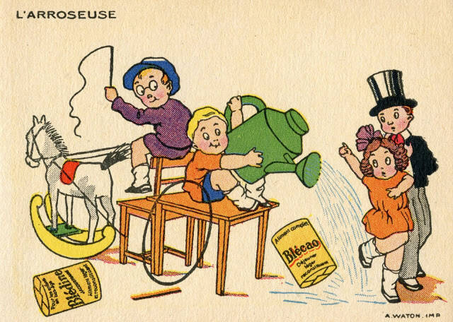 Sa publicité eut recours à des images (9 x 6 cm) dessinées en couleurs et évoquant Les moyens de locomotion, les grands moments de la Bible, les champignons, etc. Sur chaque image figurait un slogan « Blécao, aliment délicieux - Blécao, déjeuner de régime », « Blécao, à votre réveil - Blécao vous fortifiera », etc. À l’occasion de l’Exposition Coloniale de Paris 1937, des cartes (16 x 10,5 cm) se prêtèrent à des dioramas se rapportant aux colonies françaises. D’autre part, la marque offrit des planches de découpage (11,5 x 16,5 cm) — illustrations en couleurs ou ombres chinoises. Conçues en 1935 par Louis Goujeon, des planches à découper (10 x 15 cm), de trois couleurs (vert amande, bleu nuit et rouge vif), permettaient la « construction sans collage » de pirogue, hydroglisseur, aquaplane, etc. À cette même époque, la marque édita aussi une revue de 32 pages, Histoires en images pour les Enfants Sages, comportant 16 histoires illustrées en couleur d’une page chacune. Le premier numéro (1933) fut illustré par J.-P. Pinchon, Bouchet, René Klapac et Pecqueriaux.