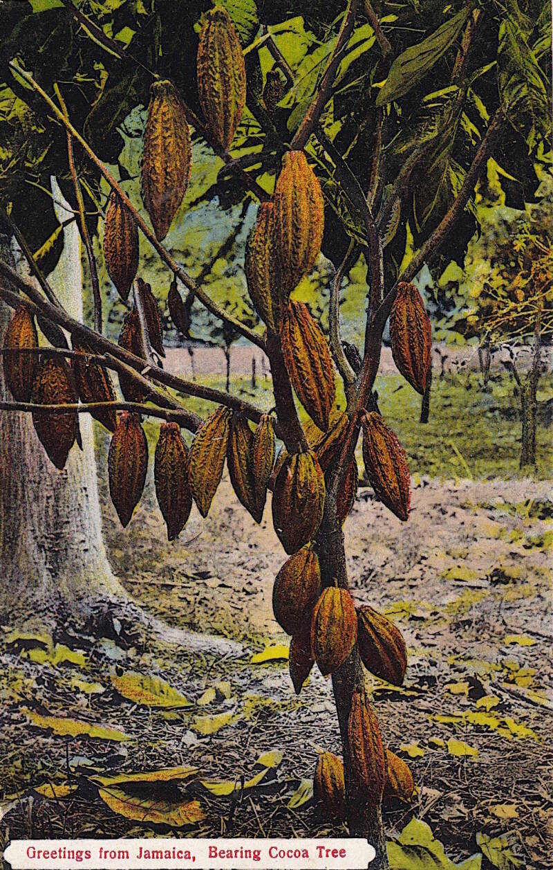 C’est dans l’entourage du gouverneur Christopher Monck, deuxième duc d’Albemarle, nommé à ce poste en 1687, que le médecin Hans Sloane découvrit cette colonie et s’y fit une réputation de naturaliste. Il y prit goût pour le chocolat, largement consommé par la population. Sans doute la production locale n’y suffisait-elle déjà pas, un siècle après le séjour de Sloane étaient importées 64 000 lbs de cacao. Il fallut, en fait, attendre le début du XXe siècle pour que, encouragée par la couronne britannique, la cacaoculture s’installât véritablement dans l’île, mais elle devait laisser la prédominance à la culture de la canne à sucre.