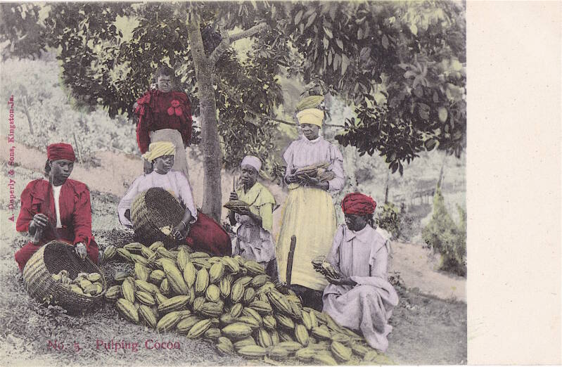Cette île montagneuse des Caraïbes, située au sud de Cuba, fut découverte par Christophe Colomb. Les Espagnols y introduisirent la culture du cacaoyer. Pour être limitée, la production n’en fit pas moins l’objet, dès la toute fin du XVIe siècle, d’exportations vers La Havane et Veracruz. Conquise par les Anglais sur les Espagnols en 1655, la Jamaïque fut la première colonie anglaise à cultiver le cacao. Réputé pour son art de préparer le chocolat, le docteur Henry Stubbe recommandait son cacao. Au tournant des années 1680, indique John Chamberlayne (The Natural History…), le cacaoyer poussait particulièrement dans les plantations du colonel Barrington. Celui-ci transforma l’île, d’une modeste région cacaoyère en une plantation éminemment rentable reposant sur l’esclavagisme. La Jamaïque constitua une étape importante dans le commerce triangulaire anglais. Sur les quelque dix millions d’esclaves africains importés dans le Nouveau Monde, presque deux millions transitèrent par des ports jamaïcains.