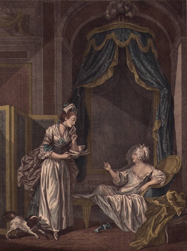 Albéric venait de prendre cette importante résolution, lorsque son valet de chambre, le beau séducteur en culotte de peluche noire, entra dans la chambre, portant sur un plateau une jolie tasse de chocolat exhalant un fumet délicieux,