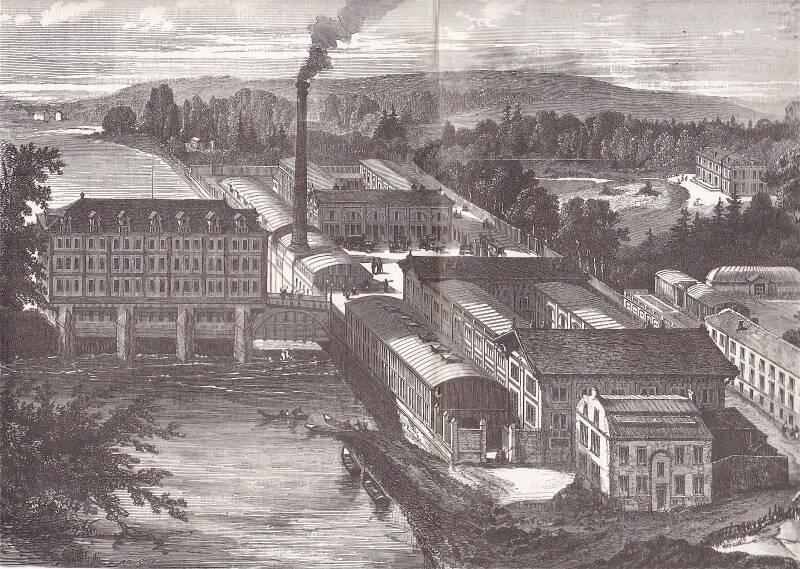Usine de Noisiel en 1855, gravure extraite du Catalogue des Prix, 1860.