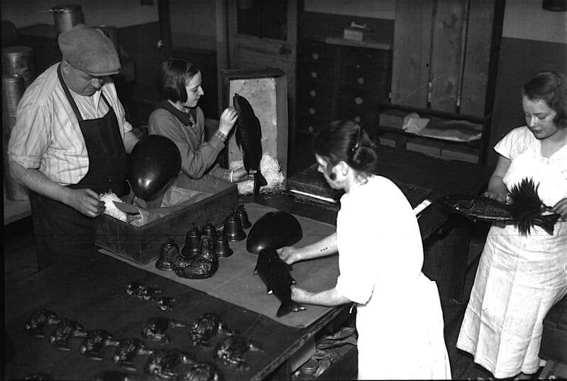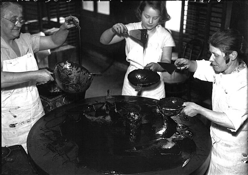 Fabrication des œufs de Pâques en chocolat, Paris, 1936.